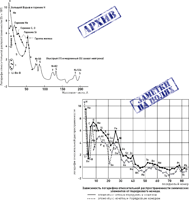 Рис. 181. Графики распространенности химических элементов во Вселенной.
