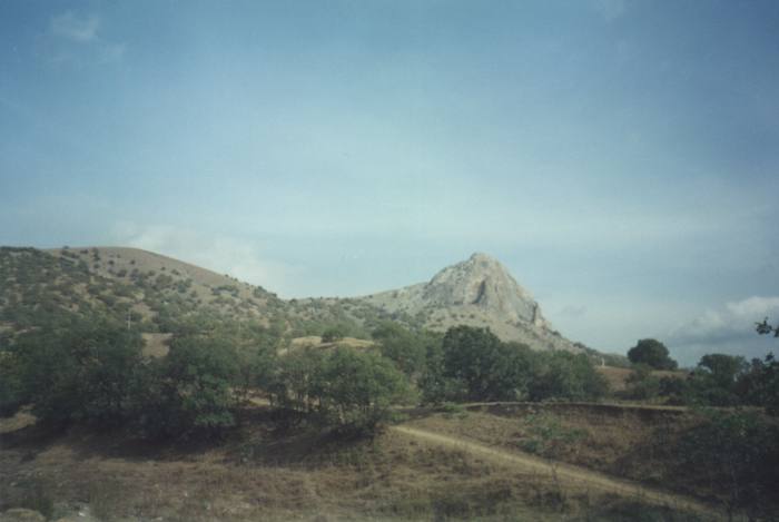 Мы покидаем Судак. Слева по ходу автобуса, в долине реки Суук-Су, – недавно возникший поселок вернувшихся на родину крымских татар. Западнее поселка возвышается безлесый холм Айбатлы (Месяц на ущербе). Со стороны Судака холм имеет форму полумесяца. По выражению П. Кеппена, “Эта гора высунулась вперед как бы для отделения Таракташской долины от Судакской”.