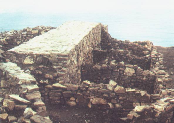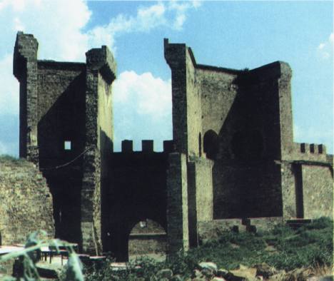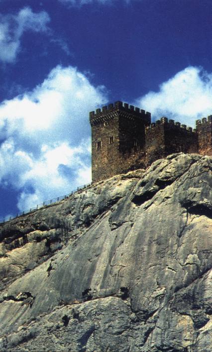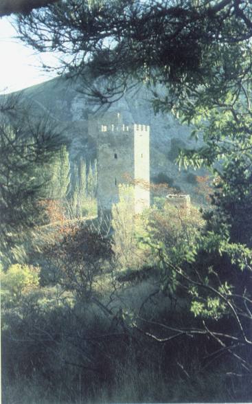 Покинув шоссе, поднимаемся к башне, возвышающейся на морем на каменистом, обрывистом холме. Верхняя часть башни разрушена; сейчас ее высота не превышает 8–9 метров. Позеленевшие от времени стены достигают трехметровой толщины. На первом этаже сохранились камин, амбразура с камерой, откос входа в башню. В цоколе находился бассейн для воды.