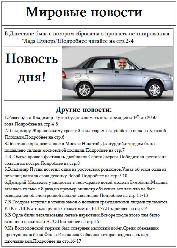 Ниже были приведены фотографии всех сбежавших.Видимо,пораженный таким событием,Вася еще долго не мог полностью осознать суть произошедшего.Только через несколько минут Василий понял,что произошло и с ужасом вспомнил историю с кактусом.Чтобы хоть как то отвлечься от дурных мыслей,Василий решил почитать статью о новой модели "Ё-мобиля":