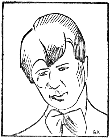 Перед нами его портрет, рисованный в 1916 году. С портрета смотрит совсем юношеское, несколько женственное, лицо. Овал его удлинен и мягок. Угол челюсти почти не заметен. На лоб нависают мягкие кудрявые волосы. И даже военный защитный костюм, в котором изображен Есенин, не делает его мужественным и грубым. Портрет сделан цветными карандашами. Благодаря этому, он много теряет в воспроизведении: так, например, нежно-красные губы на снимке кажутся просто накрашенными, слишком темными. (Портрет см. в «Гибели Есенина», 2-ое и 3-е изд. Для настоящей книги сделан с него рисунок тушью). Существуют еще более ранние портреты Есенина. Нам известна его фотографическая карточка, относящаяся к 1914 году. Там еще более выразительно все то, что мы отметили в портрете 1916 года. Продолговатое лицо, отрочески-нежное, кажется почти девичьим. Последнее, впрочем, может обгоняться, во-первых, своеобразной полуженской прической и, во-вторых, слащавой ретушью фотографа. Именно потому, что ретушированная фотография не заслуживает полного доверия, мы и не сочли нужным ее воспроизводить.