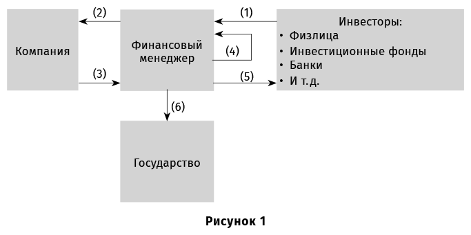 На схеме мы видим понятие «финансовый менеджер». Пока что оно включает в себя всех людей, работающих в области корпоративных финансов, – и специалистов отделов учета, и финансовых директоров. Далее в книге мы более подробно рассмотрим, кто и чем конкретно занимается в больших и не очень больших компаниях.