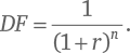 Кстати, если убрать из числителя денежный поток, то останется формула множителя дисконтирования, который называется фактором или коэффициентом дисконтирования (discount factor – DF):