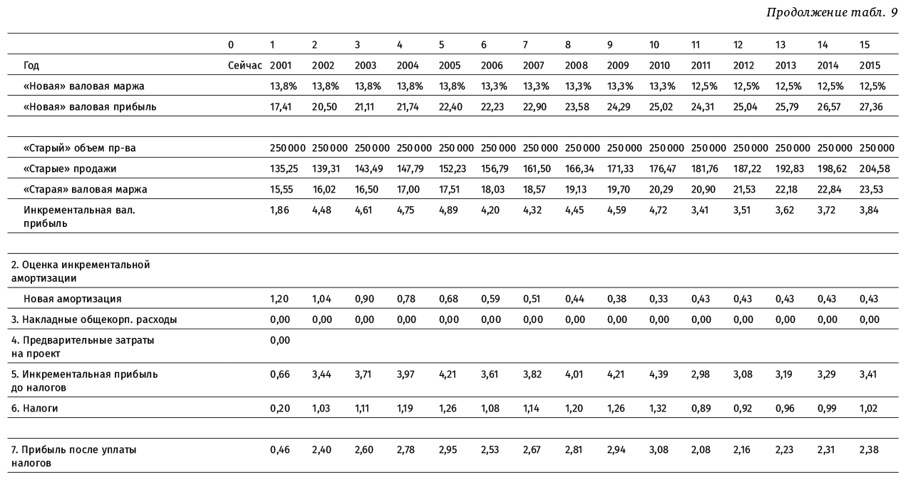 Такер подготовил анализ и финансовую модель проекта на основе этих данных (табл. 9).