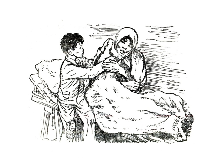 Мальчик долго стоял в раздумье. В голове моей мелькнула мысль: «Надо мальчика привести домой и попросить маму выстирать и залатать ему одежонку».