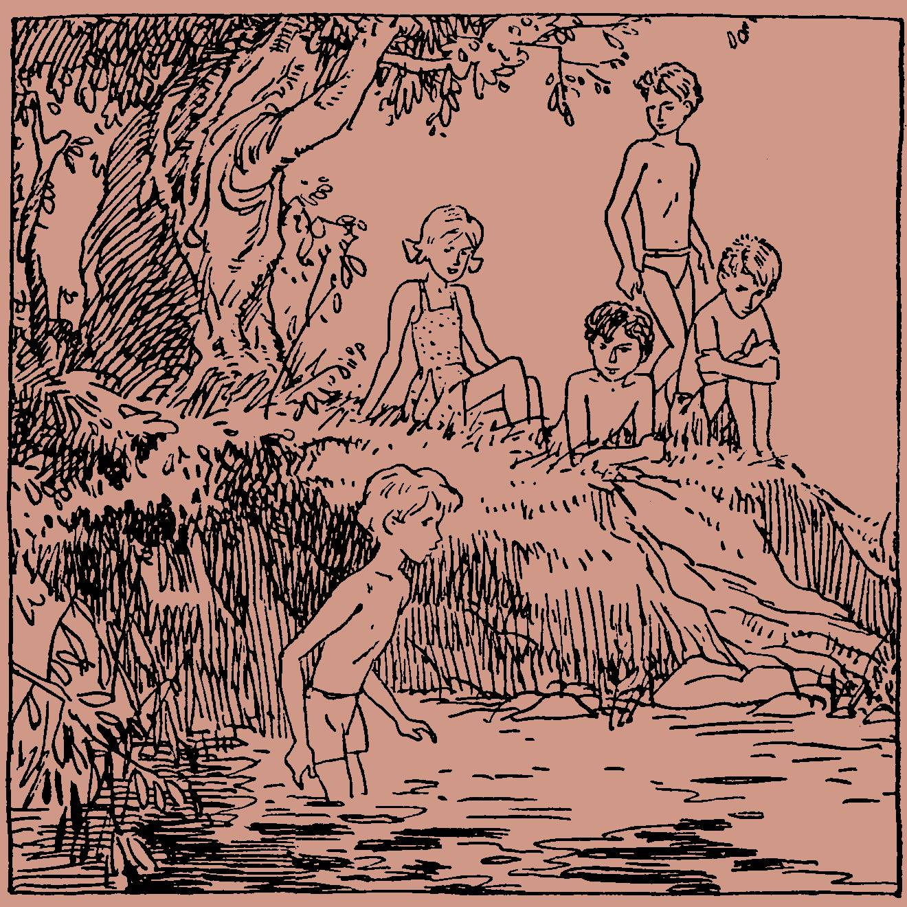 Мальчишки разделись до трусов и, поглядывая друг на друга, столпились на песчаной отмели. Девчонки присели в сторонке.