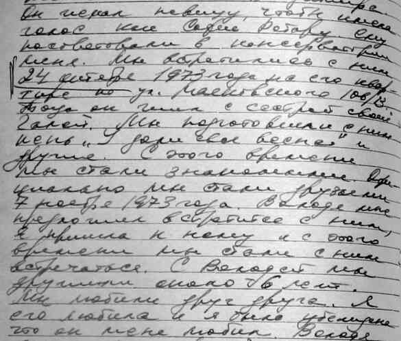 Фрагмент показаний Татьяны Жуковой, посвященный началу отношений с Владимиром Ивасюком: «Официально мы стали друзьями 7 ноября 1973 г.»