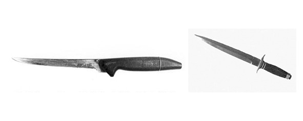Нож и кинжал Дональда Гаскинса, изъятые у него при аресте и приобщённые к следственным материалам в качестве вещественных доказательств. Гаскинс признавался, что и тем, и другим убивал людей. После казни Гаскинса некоторые его вещи и орудия преступлений были переданы в музей SLED'а, специального следственного подразделения Министерства юстиции Южной Каролины, созданного в 1947 г. особым постановлением Губернатора штата Бэлла Тиммермана.