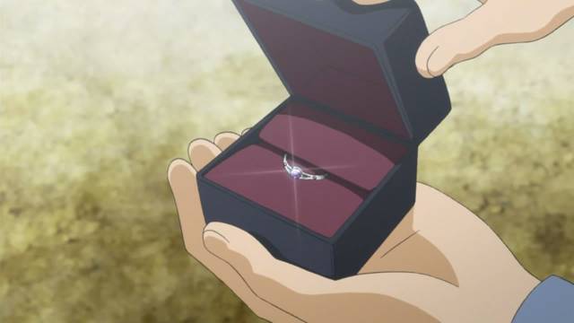Я же подошел к опустившей голову Кацуми. Встал перед ней на одно колено, вытащил из нагрудного кармана припасенную коробочку, открыл его и протянул Кацуми со словами: