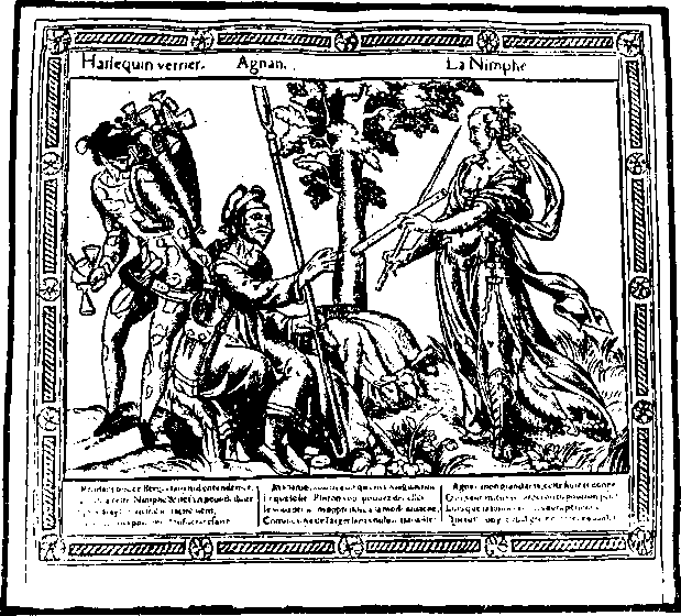 Арлекин – Продавец посуды. Гравюра XVI в.