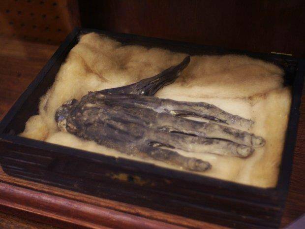 На стол перед рейхсфюрером легла деревянная коробка, похожая на те, в которых хранят дорогие сигары. Профессор откинул крышку, демонстрируя Гиммлеру её содержимое. На подложке из белоснежной ваты в коробке лежала сморщенная сухая человеческая рука с обугленными кончиками пальцев. Запах прогорклого горелого жира мгновенно заполнил кабинет профессора.