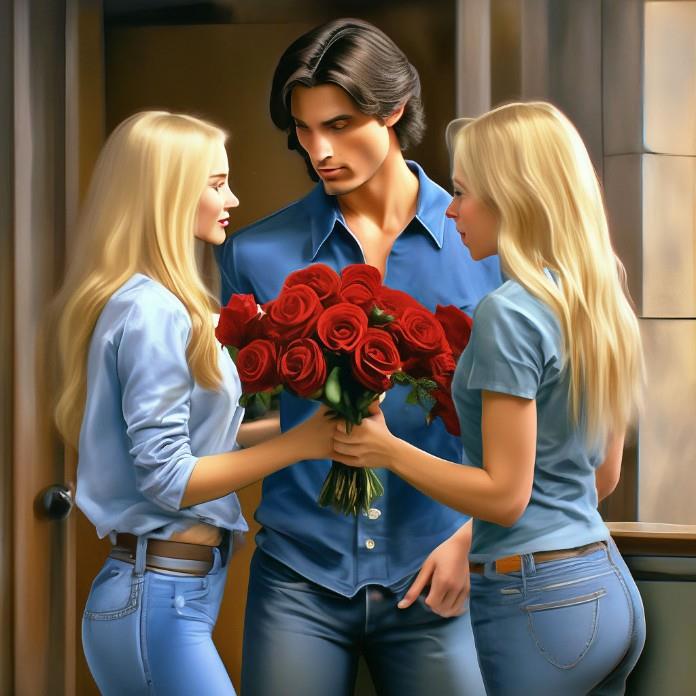 Я вручаю ей один букет, потом вместе с букетом переставляю в сторону, как очень хрупкий предмет интерьера и довольно громко выдаю в ответ: