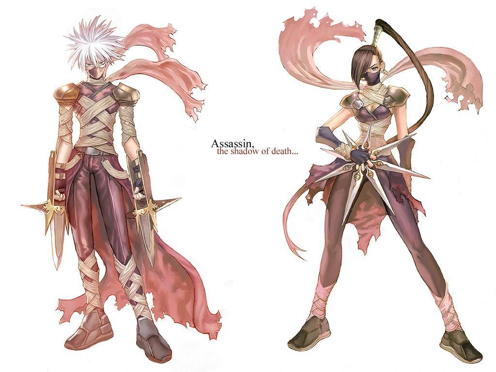 Дверь позади нас открылась, и в помещение зашёл невзрачный мужик лет 40-ка в тканевой броне, и, самое интересное, с катарами на поясе. Этим оружием пользуется только одна профессия в РО. Вторая профа воров, Убийца. Вот и довелось посмотреть на такого в упор.
