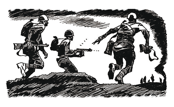 А потом случилось вот что. Немцам надоело терпеть на своём берегу этот несуразный плацдарм, они подтянули танки и артиллерию, и живую силу, которой для успешного наступления требуется, как известно, трёхкратное превосходство. Немцы начали наступление и спихнули наших к самой кромке берега Днестра, под крутой берег, впрочем, не особенно высокий. До воды для наших остаётся пара десятков метров. Переправиться через реку назад к своим наши не могут – верная смерть под пулемётами. Плотность людей на кромке берега огромная, так что любой немецкий снаряд, даже неприцельный, обязательно кого-нибудь да убивал. Укрывшись под обрывом, все ждут финальной атаки немцев с предварительной артподготовкой, в результате которой живых или непленённых наших солдат на этом кусочке берега Днестра не останется.
