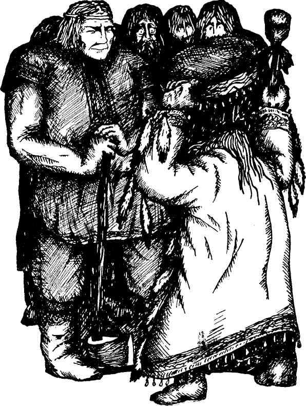 Молча выходили из юрты вождя невеселые воины. Они не били друг друга по крепким плечам, не желали здоровья и силы. За дверями их встречала ночь, темная и ветреная. Шумели молодые березы, стонали старые ели. Буйный ветер хлестал воинов по широким спинам.