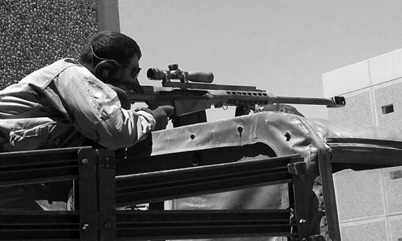 Ирак. Багдад. Американский снайпер ведет огонь из крупнокалиберной винтовки