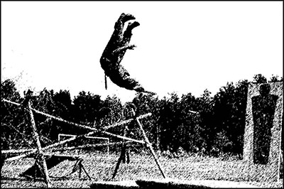 Эффектным прыжком российский боец преодолевает рогатку из колючей проволоки