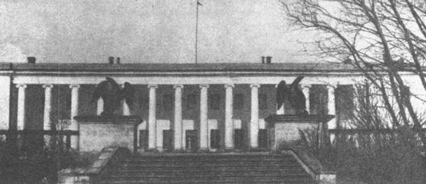 Дворец в усадьбе гр. А.К. Разумовского Горенки Московского уезда. Вид со стороны пруда. Фото конца 1940-х гг.