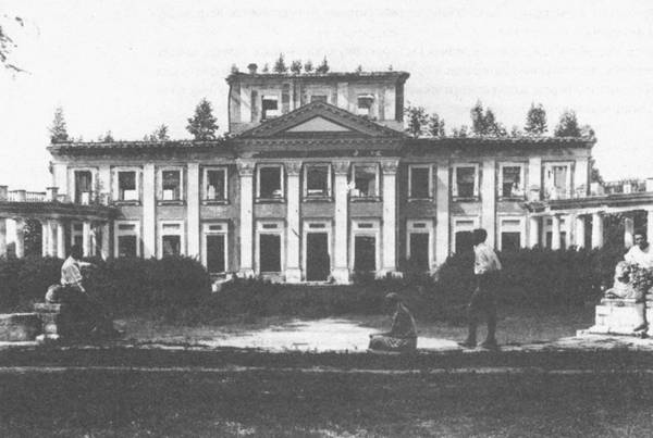 Дворец в усадьбе кн. М.П. Голицына Пехра-Яковлевское Московского уезда. Вид после пожара 1924 г. Фото 1920-х гг.