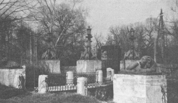 Государственные заводы в Петрозаводске исполняли решетки, мосты, фонари, скульптуры, по настоящее время составляющие видную часть декоративного убранства северной столицы. Нижне-Тагильские заводы Демидовых поставляли чугунные плиты, вазы, украшения, фигуры сфинксов и львов, уцелевшие еще в подмосковных – Петровском-Алабине и ...* (* Так в рукописи.). На пашийских заводах Голицыных были исполнены украшения парка в Кузьминках – всевозможные скамейки, тумбы с цепями, фигуры львов, садовые канделябры. На заводе имения Бибарсова в Тульской губернии отливались металлические украшения парка в Суханове Волконских – обелиск Александру I, ампирные треножники, вазы, плиты, решетки. Отливы эти повторялись – в Павловске и Царском Селе встречаются некоторые формы украшений и сооружений Суханова и Кузьминок. Чрезвычайно богато чугунными изделиями Грузино графа Аракчеева, отдельные предметы встречаются во многих усадьбах центральной России, на многих кладбищах столичных и провинциальных городов.