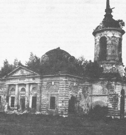 Дом в Ершове, уже несколько позднего, николаевского ампира, со стороны двора украшенный только подъездом и гербом над ним, со стороны же сада – колонной лоджией, несомненно, возводился “под смотрением” московского зодчего, талантливого сотоварища Д.Жилярди, А.Г. Григорьева. Им, во всяком случае, была построена церковь, подписной проект которой сохранился в собрании чертежей архитектора. Ампирный храм несколько необычно принял вид высокой башни, как бы воскресив здесь тип церкви “иже под колоколы”, свойственный русскому зодчеству в конце XVII века. Внизу это куб с примыкающими к нему полукругами апсиды и притвора и двумя портиками на северной и южной сторонах; выше следуют ярусы башни, все более и более облегчающейся кверху, где в конце полусферический купол и ампирный шпиль над ним венчают все сооружение. Только по сравнению с проектом – с исключительно тонко исполненным чертежом-акварелью – в натуре все стало более вытянутым в высоту. Ершовская церковь – своеобразный ампирный храм-стрела. Внутри – стильный иконостас, конечно, исполненный по чертежам того же мастера; на стенах храма более поздние по времени мраморные доски памяти родных и друзей, связанных с Ершовом, с семьей Олсуфьевых. На одной из досок, насколько помнится, стоит имя Фета[26]26