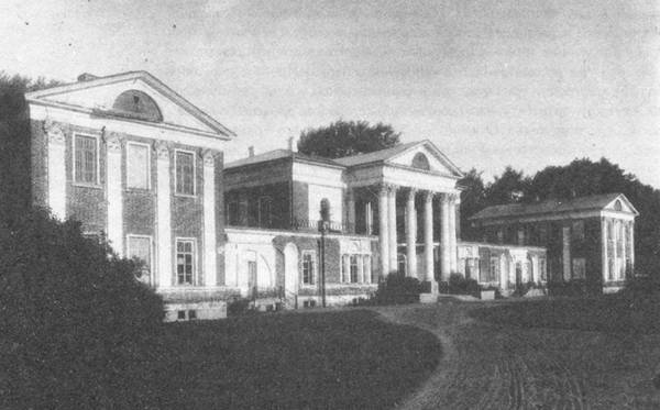 Баженовский академизм, столь ярко французский в Пашковом доме, в доме Прозоровской и затем в модели Кремлевского дворца, находит несомненный отзвук в деревенских дворцах обеих яропольцевских усадеб.