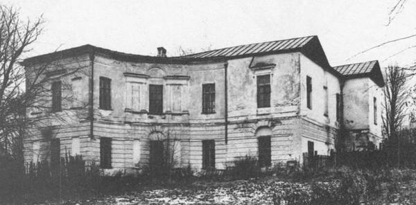 Дом в Никольском, собственно, тоже не существует. Его история – летопись упадка и оскудения русского дворянства. Конечно, его задумал Н.А. Львов в широких, надо думать, превышавших его средства масштабах. Центральный трехэтажный кубический массив украшен, как всегда, четырехколонным портиком. Этот вид дома запечатлен на старом рисунке, воспроизведенном в гротовском издании сочинений Г.Р. Державина[56]56