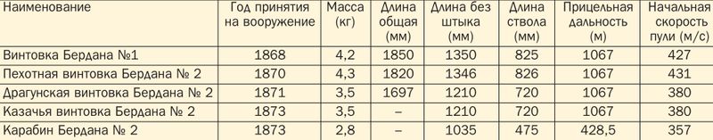 Технические характеристики винтовок Бердана различных моделей