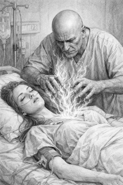 А приглядевшись, понял, что меня удивило. Посреди бокса, в котором должен был находиться один человек, над спящей пациенткой стоял крупный, лысый мужик в больничной пижаме, и тянул к ней руки. Причем, судя по положению ладоней, нацелен он был на… грудь?
