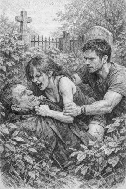 Осознав, что что-то не так, мы переглянулись, и не сговариваясь рванули на тот участок, который осматривал полицейский. И пробежав совсем немного, увидели, как за заросшей бурьяном могилой, идет борьба. И ломая стебли высокой травы, по земле катаются двое…