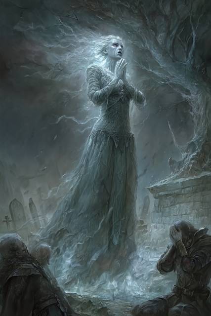Мэлэх поведал, что банши – скорбный дух, возникающий, когда человек перед смертью испытывал настолько сильные ментальные муки, что его душа не смогла найти пути к богу и осталась на земле, продолжая страдать. Ее крик может свести с ума даже опытных воинов и магов, а обычных людей и вовсе убивает на месте, после чего их души сливаются с ней, добавляя сил.