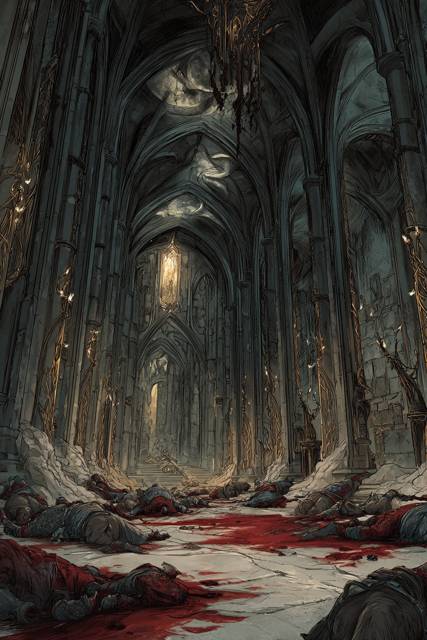 Я стоял в пустом просторном холле с потолками, высоте которых позавидовал бы любой храм. На полу лежали трупы только что убитых эльфов, но никто не спешил им на помощь. Вокруг каждого тела медленно расползалась алая лужа крови, удивительным образом гармонировавшая с серостью каменных плит и золотым плющом, убегавшим вверх по бесконечной череде колонн.