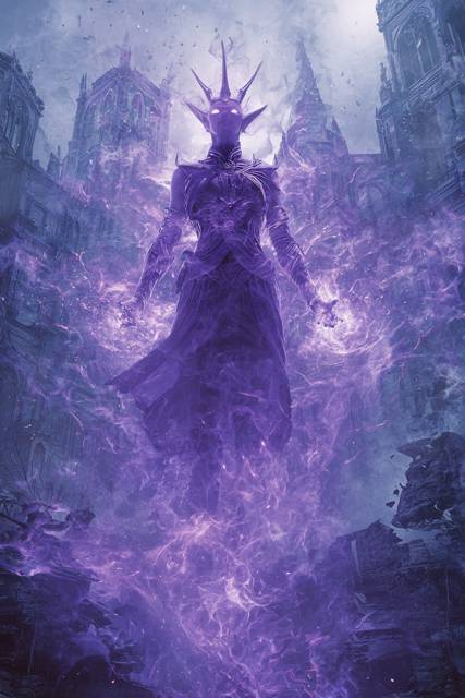 Средь ясного неба раздался оглушительный гром, и в землю перед храмом ударил столб фиолетового света. Тот продолжал изливаться, привлекая всеобщее внимание, а в его основании вырос цветок. Цветок превратился в кристалл, а кристалл в четыреметровую фигуру величественной эльфийки, вся одежда которой, как и она сама, состояли из частиц Межмировой Энергии.