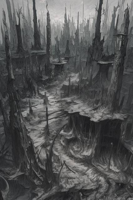 Долго ли, коротко ли, но мы вышли на очередную окруженную сталагмитами проплешину. Каменные конусы все также вздымались к неизменно серому небу, а унылый пейзаж навивал тоску не хуже идущего четвертый час балета начинающей труппы. В воздухе так и витала мысль о повешении. Вот только даже при наличии подходящей веревки цеплять ее все равно было не за что.