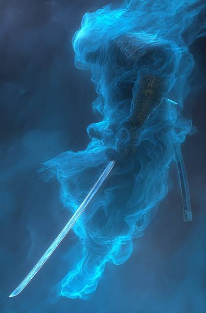 Позади меня раздался полный боли крик. Обернувшись, я увидел, как солдата Заманска с воздуха атаковало сразу пять полупрозрачных, дымчатых, отливающих синевой существ, внешне напоминающих самураев в доспехах периода Сэнгоку. Орудуя катанами, они наносили отнюдь не иллюзорные раны, и заливающийся кровью воин упал на землю.
