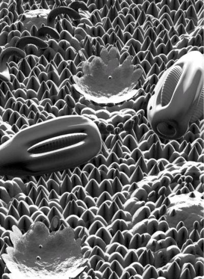 Однако есть и другие подходы к созданию нанороботов: один из наиболее обсуждаемых – это конструирование механических нанороботов из алмазоида – материала, подобного алмазу, но набираемого поатомно с помощью микроскопических манипуляторов в сложные трехмерные структуры. Уже предложены чертежи отдельных деталей – подшипников, шестеренок, которые могут стать частями этого механического наноробота. С помощью атомного силового микроскопа возможна поатомная сборка первого прототипа.