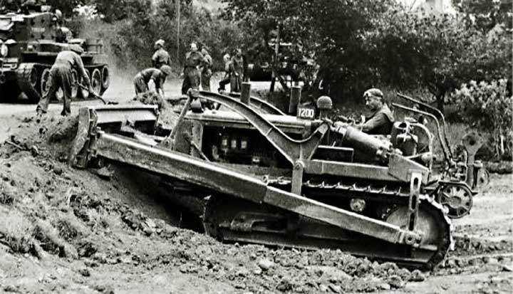 Трактор TD-18 International Harvester в варианте бульдозера на Западном фронте Такие тракторы поставлялись в СССР по программе ленд-лиза и использовались в качестве эвакуационных средств. По скорости они недалеко ушли от «сталинцев».