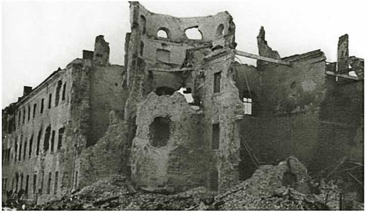Один из домов в «крепости» Познань. Он был превращен в узел обороны и почти полностью разрушен при штурме. Февраль 1945 г.