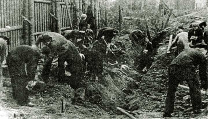 Москвичи копают окопы на улицах столицы. К счастью, в реальном 1941 г. они не понадобились.