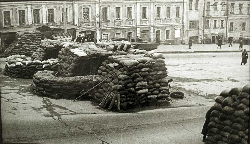 Баррикада в Москве на Смоленской улице. Она так и осталась укреплением, построенным «на всякий случай».