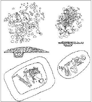 Десятки поколений южнотуркменского населения совершали захоронения в больших каменных склепах, служивших родовыми или фамильными усыпальницами. Они представляли собой помещения (на уровне горизонта либо ниже его), стены которых облицовывались камнем или кирпичом-сырцом, а попасть в них можно было через коридор. Подобные усыпальницы схожи с многочисленными каменными цистами (камерами) под курганами в степях Евразии и дольменами Западной Европы, также покрывавшимися сверху курганами. Наиболее древним европейским отражением погребальных традиций Передней Азии и юга Туркмении явились захоронения культуры воронковидных кубков и дольмены Пиренеев.