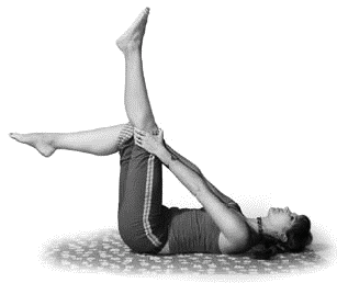 – Потянитесь туловищем в сторону, противоположную согнутой ноге.