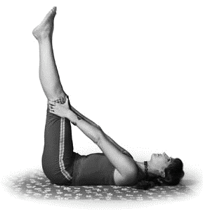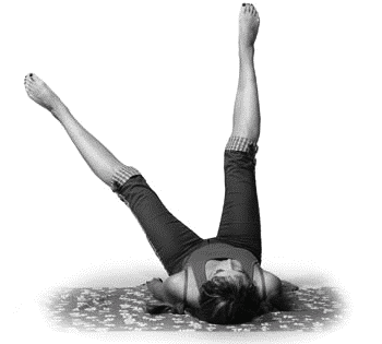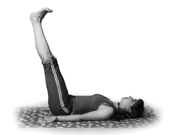 – Лягте на спину, руки раскиньте в стороны на уровне плеч, одна нога вытянута вверх вертикально.