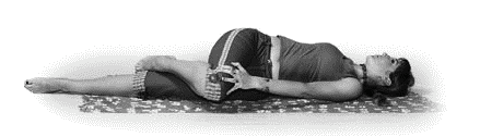 – Лягте на спину, согните одну ногу в колене и положите ступню согнутой ноги на колено другой ноги, одна рука лежит на колене согнутой противоположной ноги, другая – вытянута в сторону.