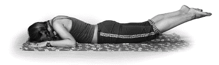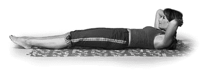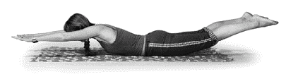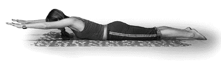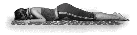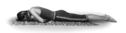 – Лягте на живот, лоб опирается об пол, руки вытянуты вперед.