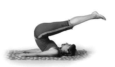 – Перенесите ноги дальше за голову, при этом таз и поясничная часть позвоночника плавно отрываются от пола.