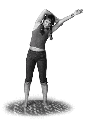 – Вытяните влево левую руку и прогнитесь вбок еще глубже.