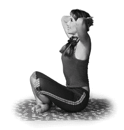 – Сядьте на пол «по-турецки», руки скрестите за головой.