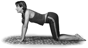 – Приподнимите ягодицы так, чтобы лобковая кость оторвалась от пола, а поясничный отдел позвоночника максимально прогнулся.