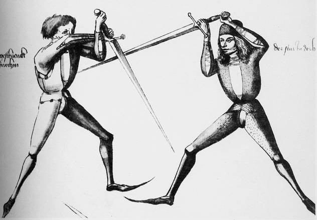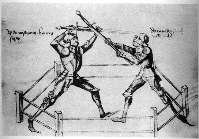 Был еще один вид поединка-зрелища. Начиная со Средних веков обучение фехтованию стало профессиональной деятельностью, и фехтмейстеры организовывали специальные манежи, набирали учеников. Своеобразной рекламой для них были публичные поединки, на которых они демонстрировали свои умения, вступали в прямое соперничество с конкурентами. Назывались такие поединки ассо [3]3